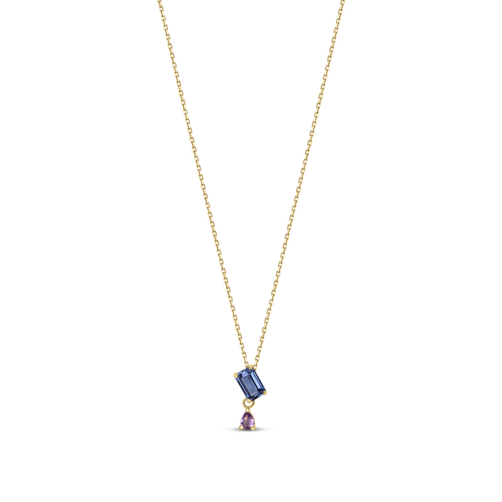 Collier en or jaune 750 recyclé, tanzanite et saphir rose.