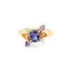 Bague en or jaune 750 recyclé, spinelle, saphirs roses et jaunes, diamants.